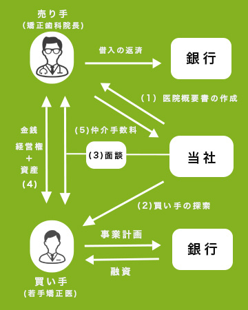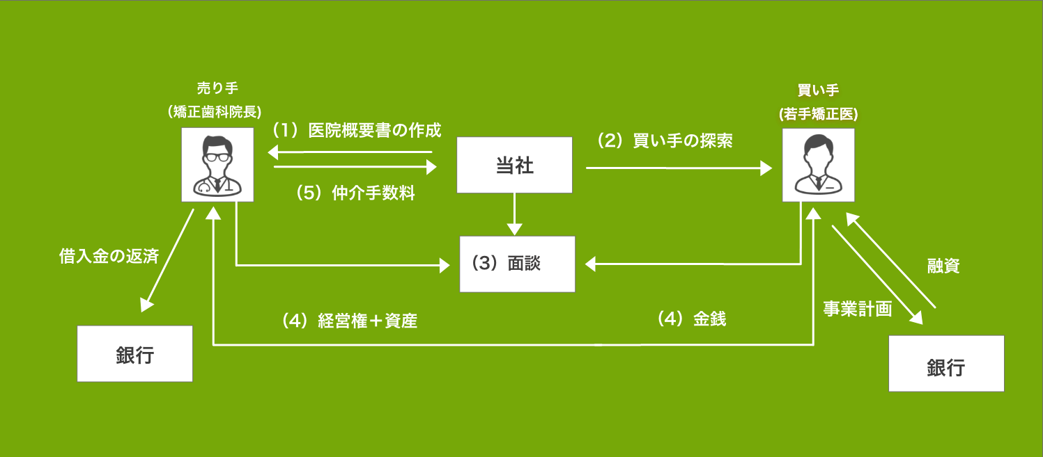 | 買い手探索 | 若手矯正医と当社との守秘義務契約締結 | 本サービスに申し込む若手矯正医に守秘義務を課します |